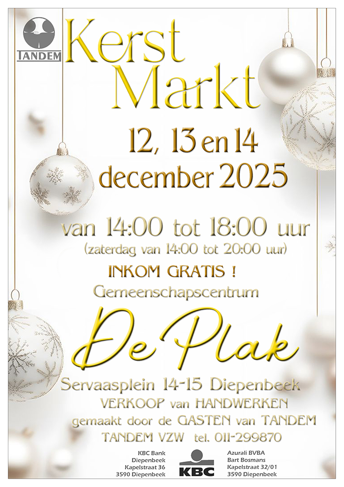 Wij zijn op vrijdag, 12 december en zondag14 december open vanaf 14.00u tot en met 18.00u en op zaterdag 13 december zijn we geopend tot 20.00u